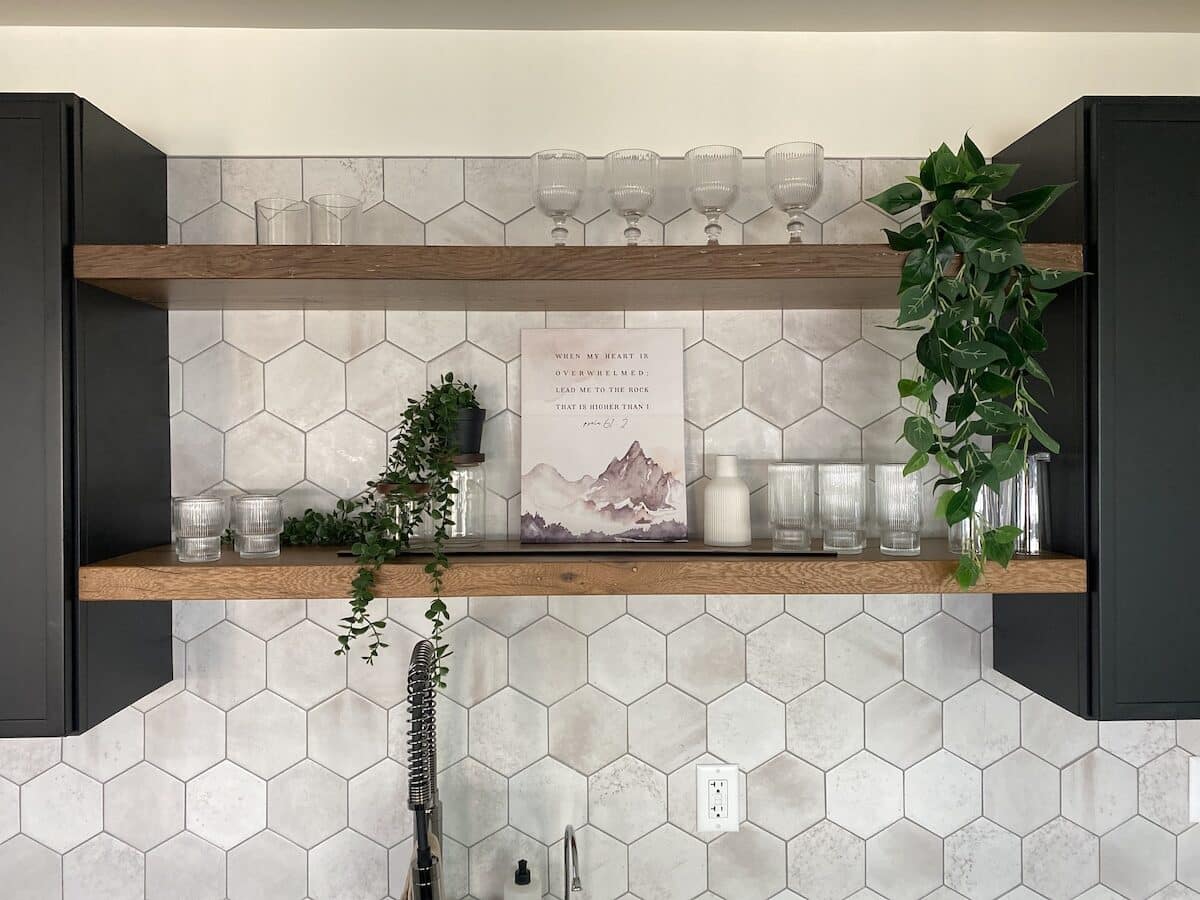 • Floating shelves or enclosed cabinets for a clean, finished look.